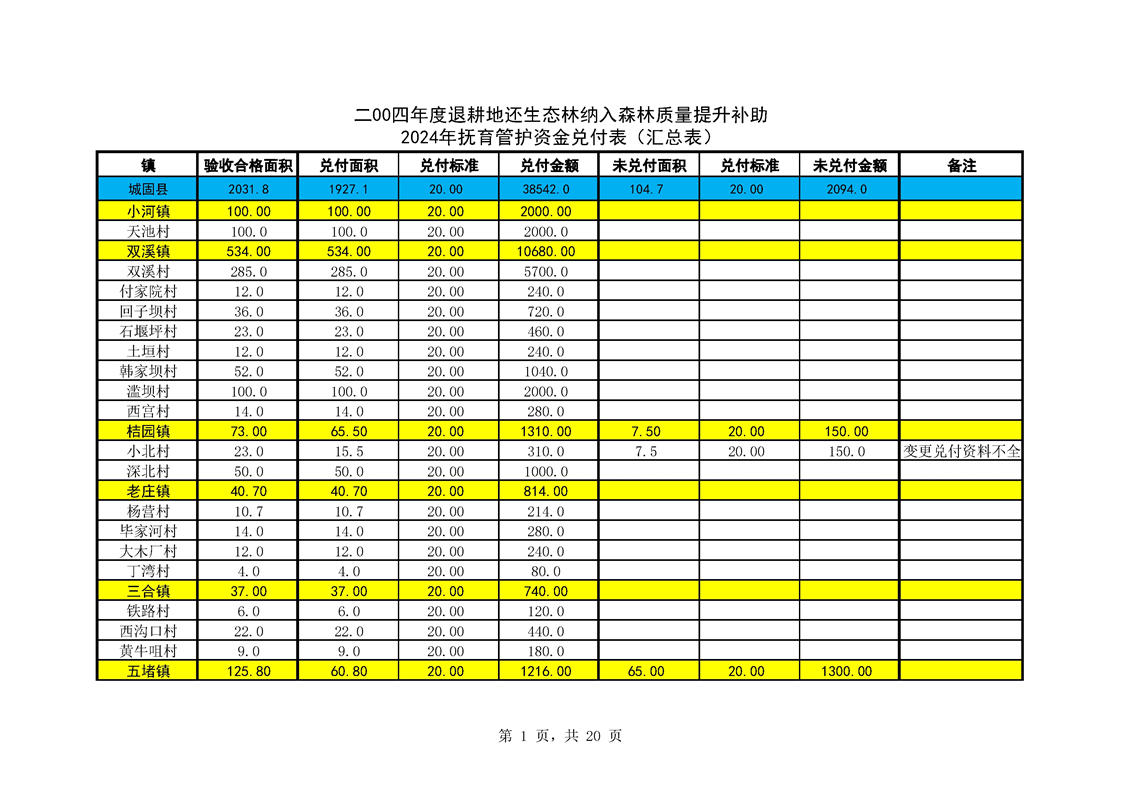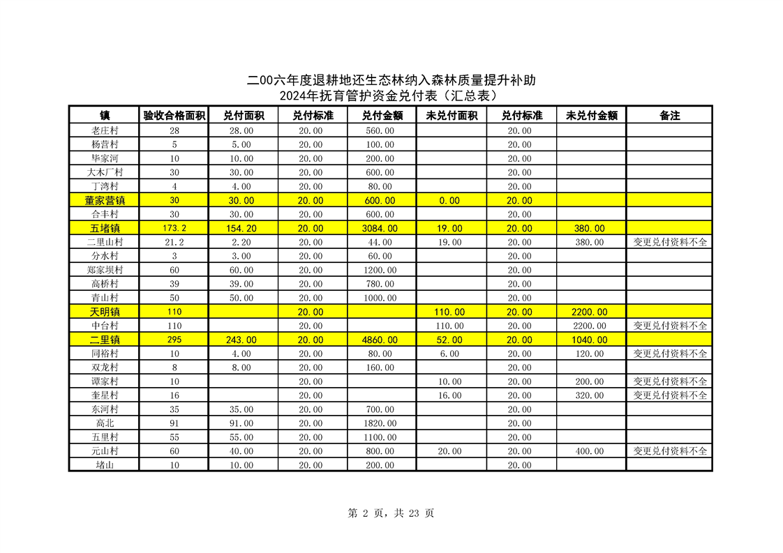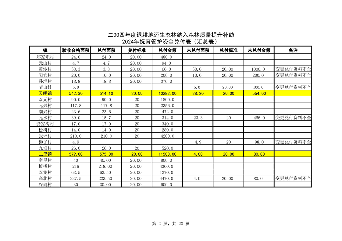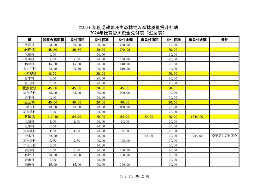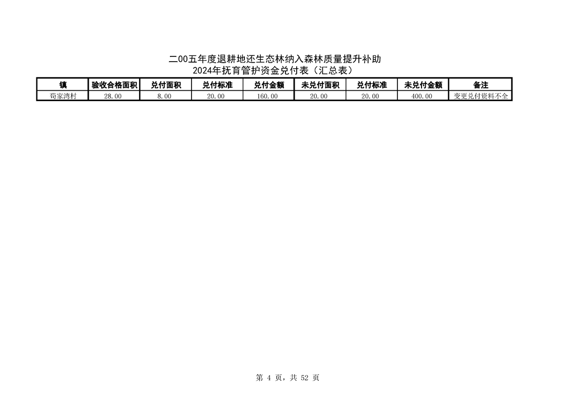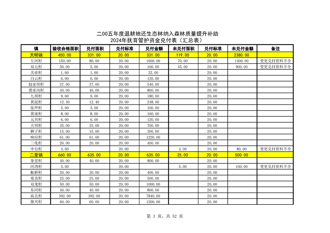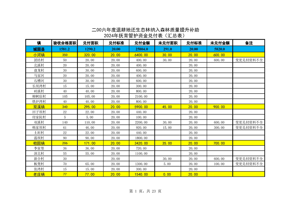 城固县林业局关于兑现2024年度上一轮退耕地还生态林森林质量提升补助资金发放明细公示