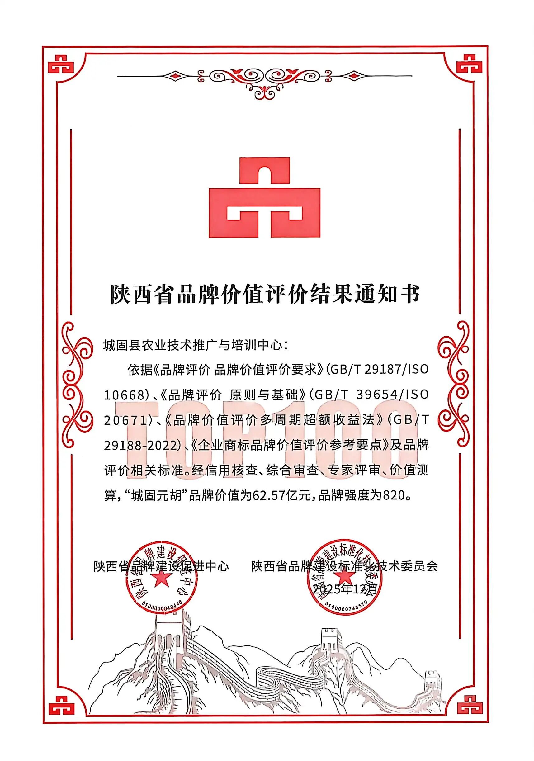 12 月 26 日,2025 陕西品牌发展交流大会在西安成功举办。会上,陕西省商标品牌价值评价结果正式发布,经权威机构专业测算,“城固元胡” 区域公用品牌入选 “2025 陕西品牌价值 TOP100” 榜单,品牌价值 62.57 亿元,是继 2024 年荣获 “陕西好商标” 称号后,再次斩获的省级权威认可,成为陕南中药材产业品牌建设的靓丽名片。