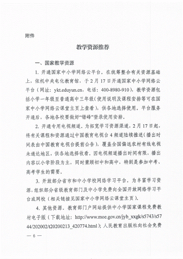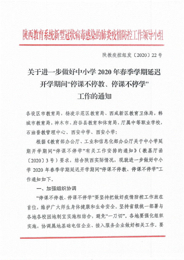关于进一步做好中小学2020年春季学期延迟开学期间“停课不停教、停课不停学”工作的通知