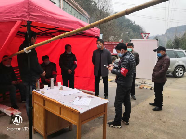 在木瓜村村口查看值班情况
