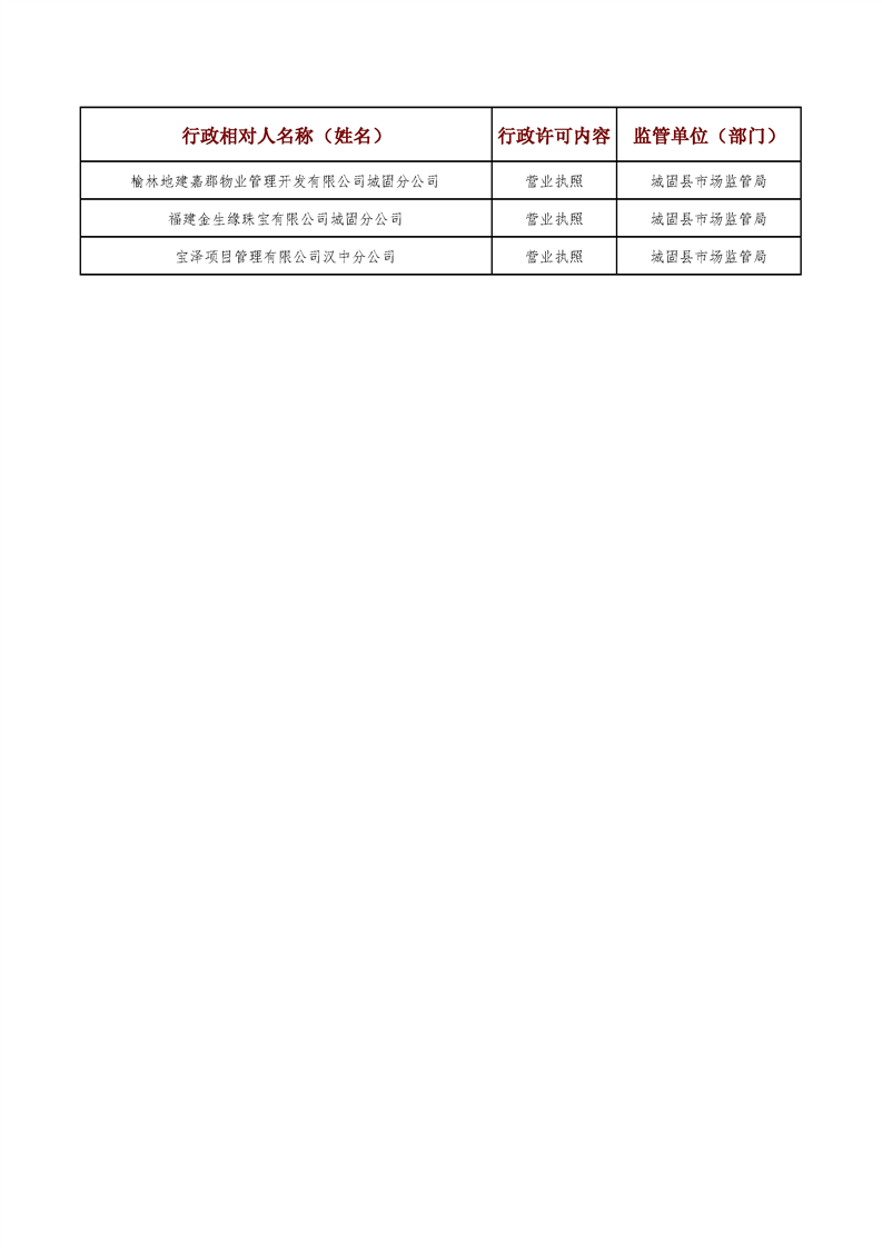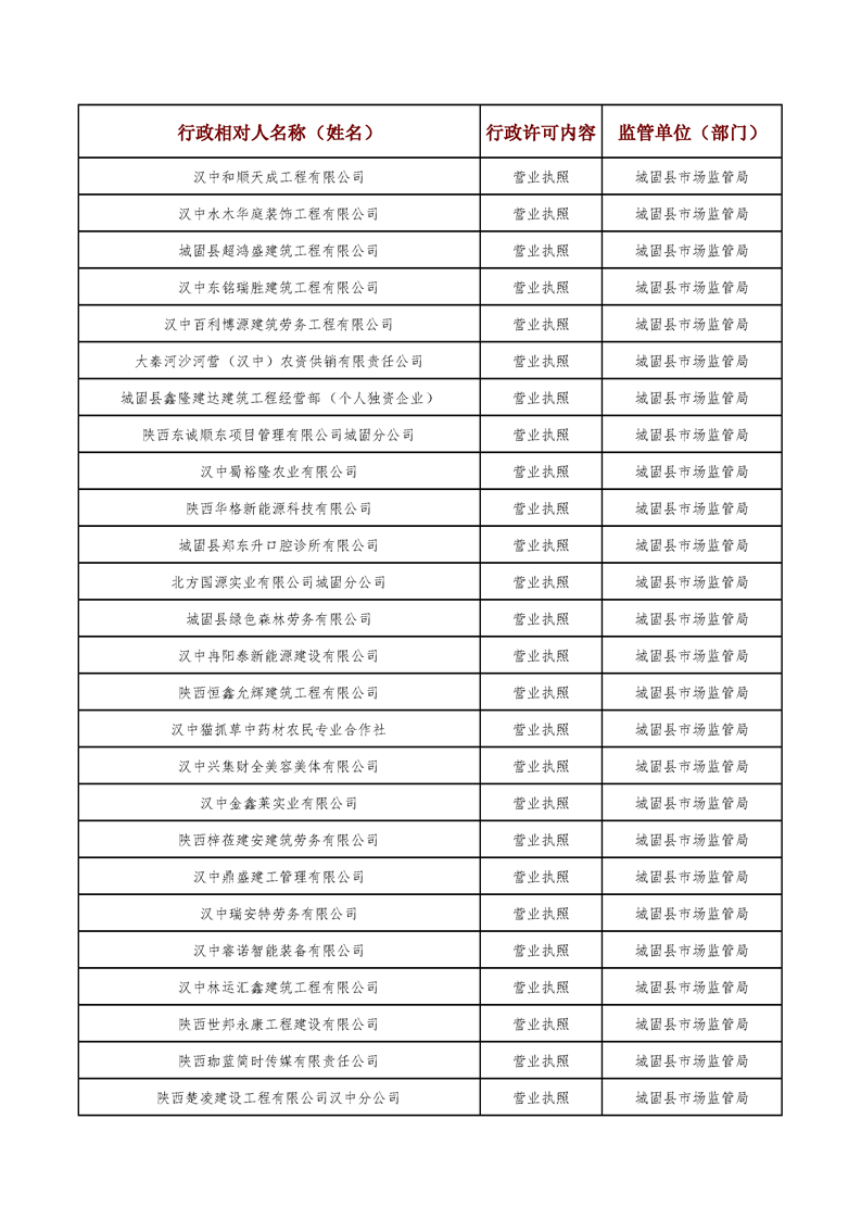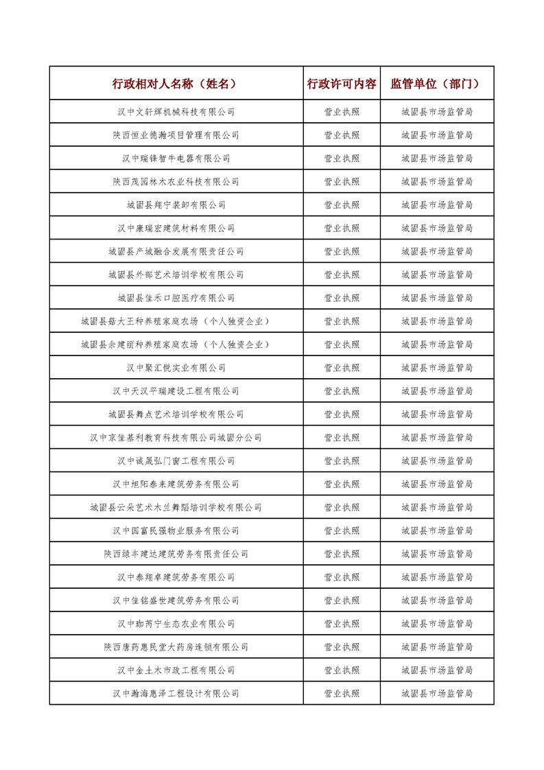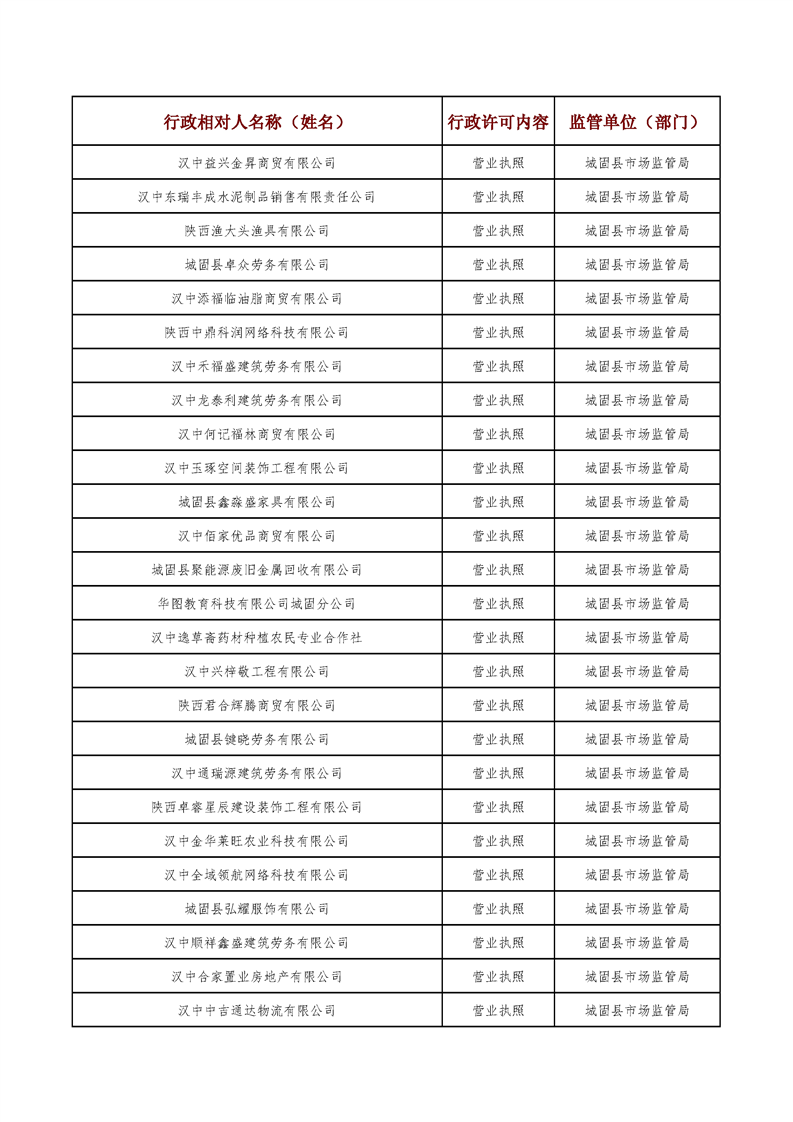 城固县行政审批服务局2024年11月份行政许可结果公开