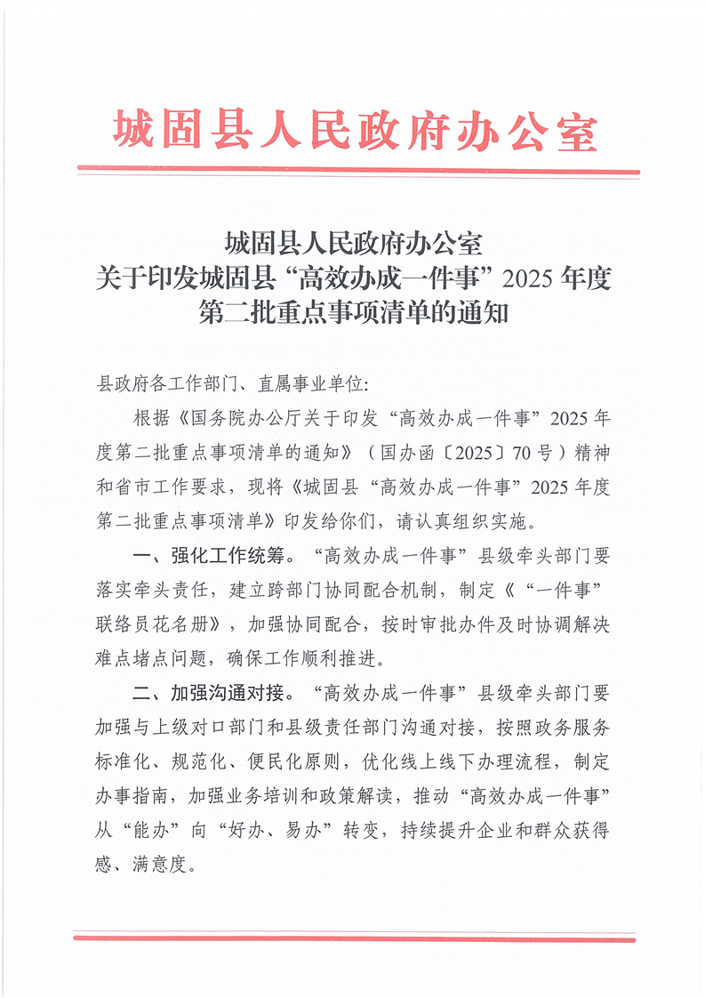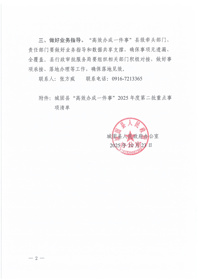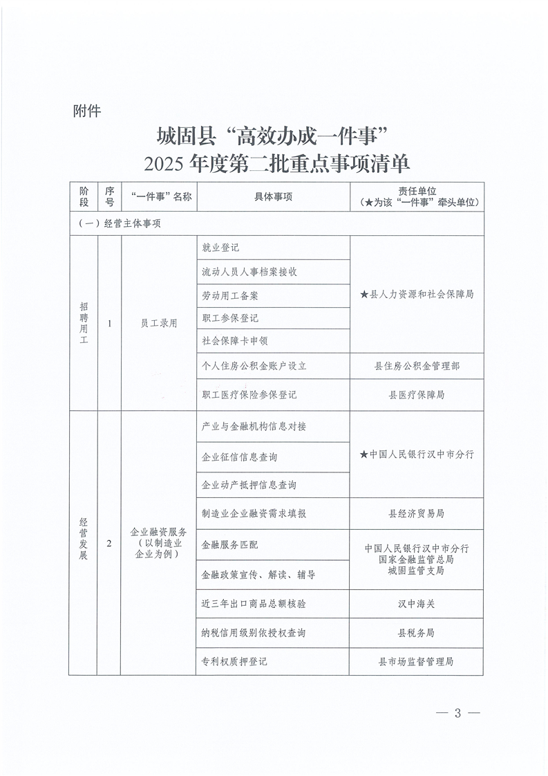 城固县人民政府办公室关于印发城固县“高效办成一件事”2025年度第二批重点事项清单的通知