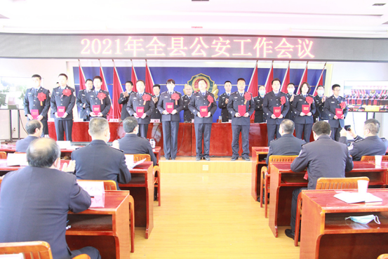 副县长、县公安局党委书记、局长黄河紧扣各级政法、公安工作会议精神,系统总结了2020年全县公安工作,认真分析了当前面临的形势,并就做好2021年公安工作进行了全面部署:一是聚焦安保维稳主线,提升风险化解能力。坚持以建党100周年安保维稳为主线,始终把防范化解政治安全风险置于首位,严格落实“早发现、早报告、早处置”工作要求;二是聚焦市域治理重点,提升整体打防能力。要夯实基层基础,做强治安防控,强化道路交通安全管理,严厉打击违法犯罪;三是聚焦科技警务导向,提升信息化建设能力。坚持走科技兴警之路,全面规划部署公安信息化和大数据实战应用平台建设,不断推进警务实战向大数据、信息化、智能化方向靠近;四是聚焦县域发展中心,提升服务保障能力。要加强规范执法,深化“放管服”改革,主动奉献力量善作为;五是聚焦政治建警方针,提升实干担当能力。要旗帜鲜明讲政治,实干担当转作风,从严治警不放松,着力锻造高素质过硬公安铁军。