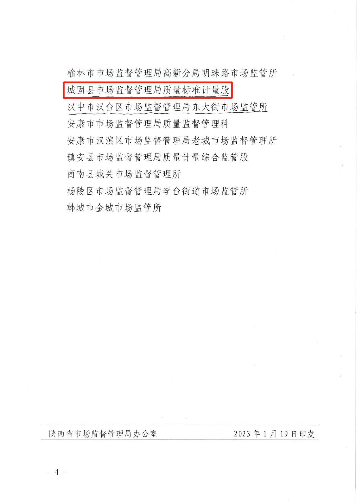 1月19日,省市场监管局发文《关于表扬产品质量安全监管保障工作突出集体的通报》,对城固县市场监管局质量标准计量监管股等29个集体给予通报表扬。