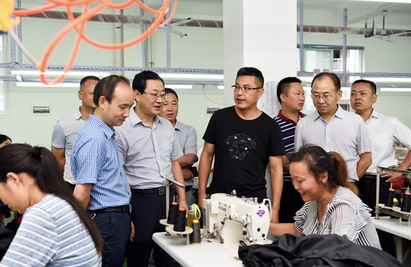 在江湾移民搬迁产业园,胡新利分别深入克莱德、佳可和固石服饰两家公司制衣车间,检查参观了服装制作流水线作业,同员工交流在家门口工作带来的便利。