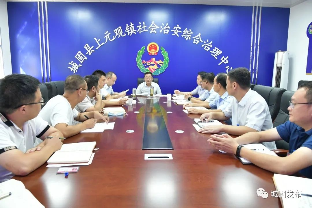 胡新利来到上元观镇社会治安综合治理中心,与镇领导班子座谈交流,详细听取班子成员分工及工作开展、基层治理成效、项目招引、镇域经济发展等情况汇报。