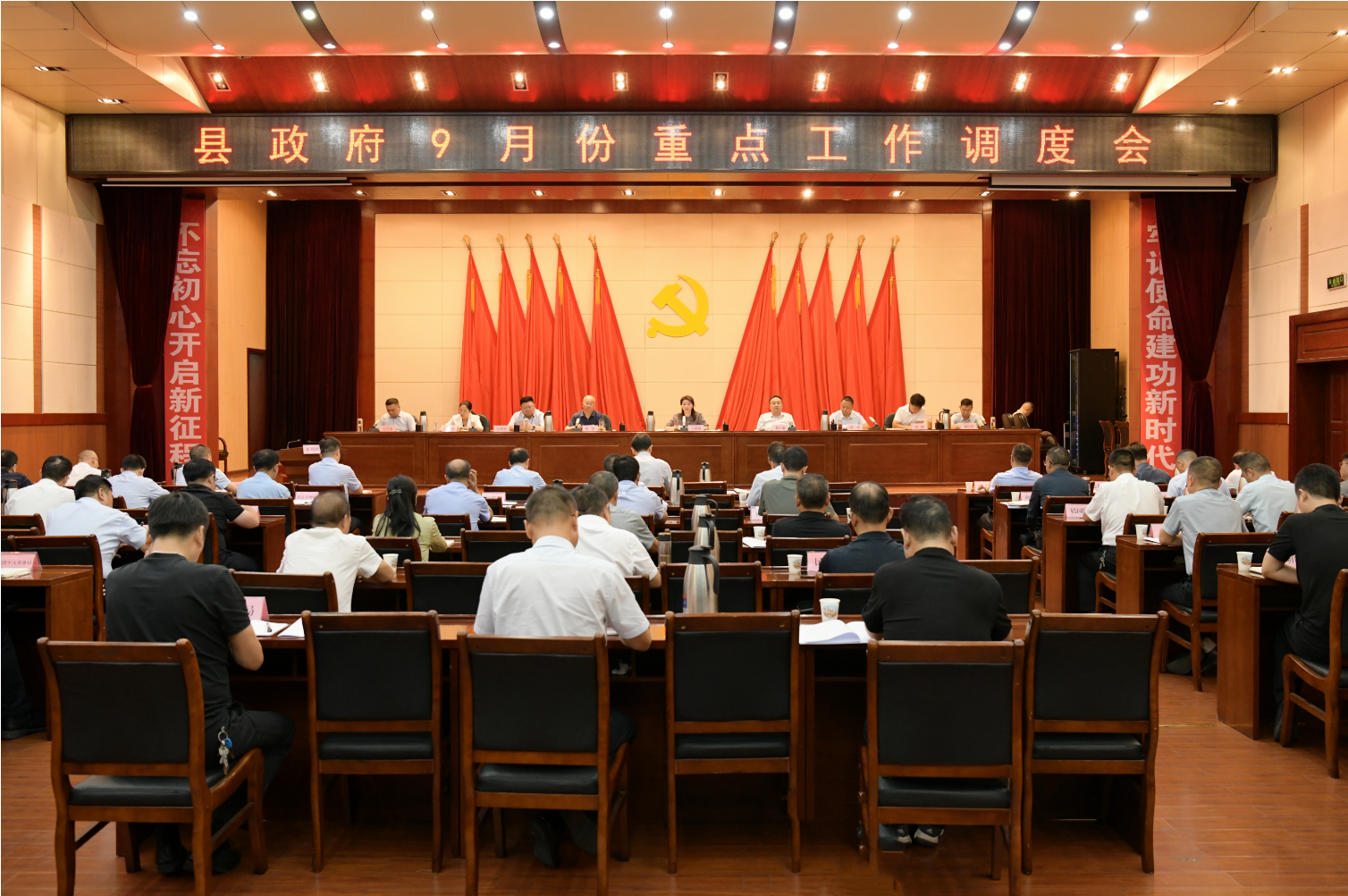 王健梅强调,三季度是全力以赴拼经济、促发展的黄金季,9月是冲刺三季度的关键月。全县上下要坚持问题导向、精准研判赶超。锚定目标任务、把握宏观形势、坚定发展信心,补短强弱、奋力追赶,为实现季度红、全年红目标创造有利条件、奠定坚实基础。要大抓项目招商、强化投资拉动。始终坚持以项目招商为重点组织经济工作,强化效率意识、效能意识、效益意识,打好谋划、争跑、招引、建设组合拳,以更多有效投资拉动经济稳增长。要聚力产业发展、稳定经济增长。坚持抓纾困稳主体、抓工业强支撑、抓三产促消费、抓农业提质效,促使形成产业链中下游集聚趋势,以滚动效应和集群效应为全县经济发展增势赋能。要增强风险意识、守牢安全底线。用心、用情、用力统筹安全和发展工作,抓好近期抗霖播种、安全生产、风险防范、生态环保、社会治理等工作,树牢安全发展底线,确保社会大局和谐稳定。要统筹重点工作、确保齐头并进。对照年度目标任务,在城市建设、巩固衔接、民生保障等行业领域统筹发力、协调联动,确保实现多目标动态平衡发展。要强化作风能力、全力推动落实。坚持扛牢责任抓落实、争先创优抓落实、跟踪督导抓落实,全力推动县政府系统各项工作提质增效、行稳致远。
