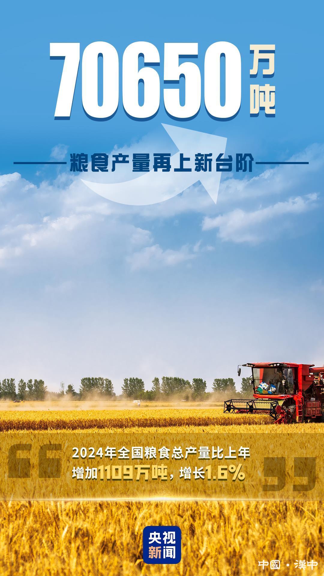 2024年,中国粮食总产量在连续9年超过1.3万亿斤后,迈上一个新台阶,突破1.4万亿斤,创出历史新高。这意味着,中国粮食安全的饭碗越端越牢,也意味着中国人的餐桌会越来越丰富、越来越有滋味。