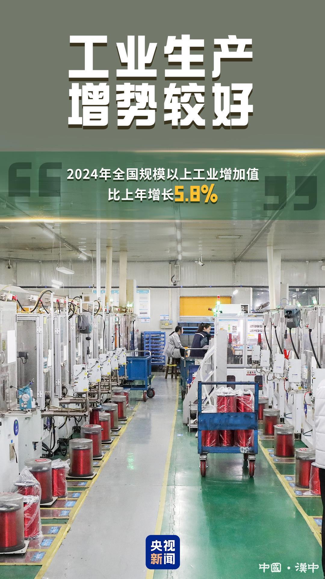产业结构优化升级,2024年规模以上高技术制造业、装备制造业增加值占规模以上工业增加值的比重分别上升到16.3%、34.6%。