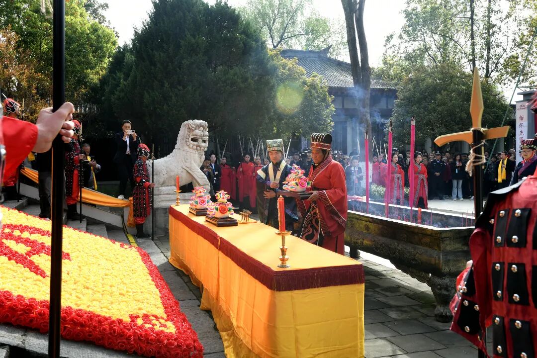 上午9时,张骞纪念馆内旌旗高悬、礼乐和鸣,出席嘉宾在司祭官携辅祭使节的引导下行三进殿礼、入主祭区。