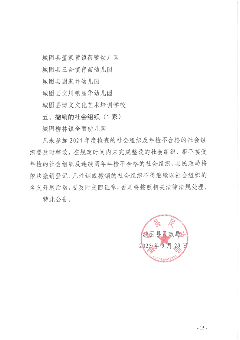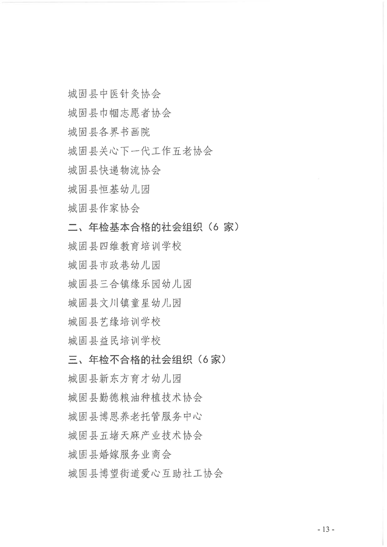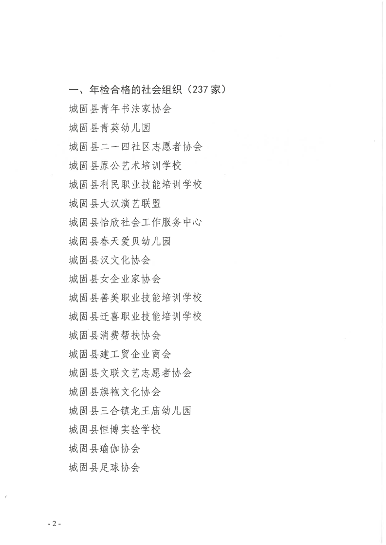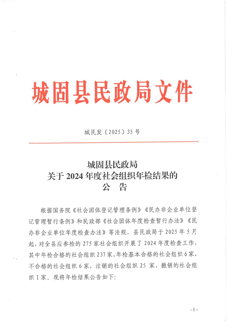 城固县⺠政局关于2024年度社会组织年检结果的公告