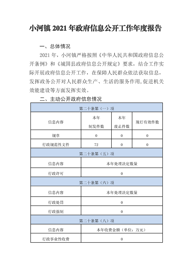小河镇2021年政府信息公开工作年度报告