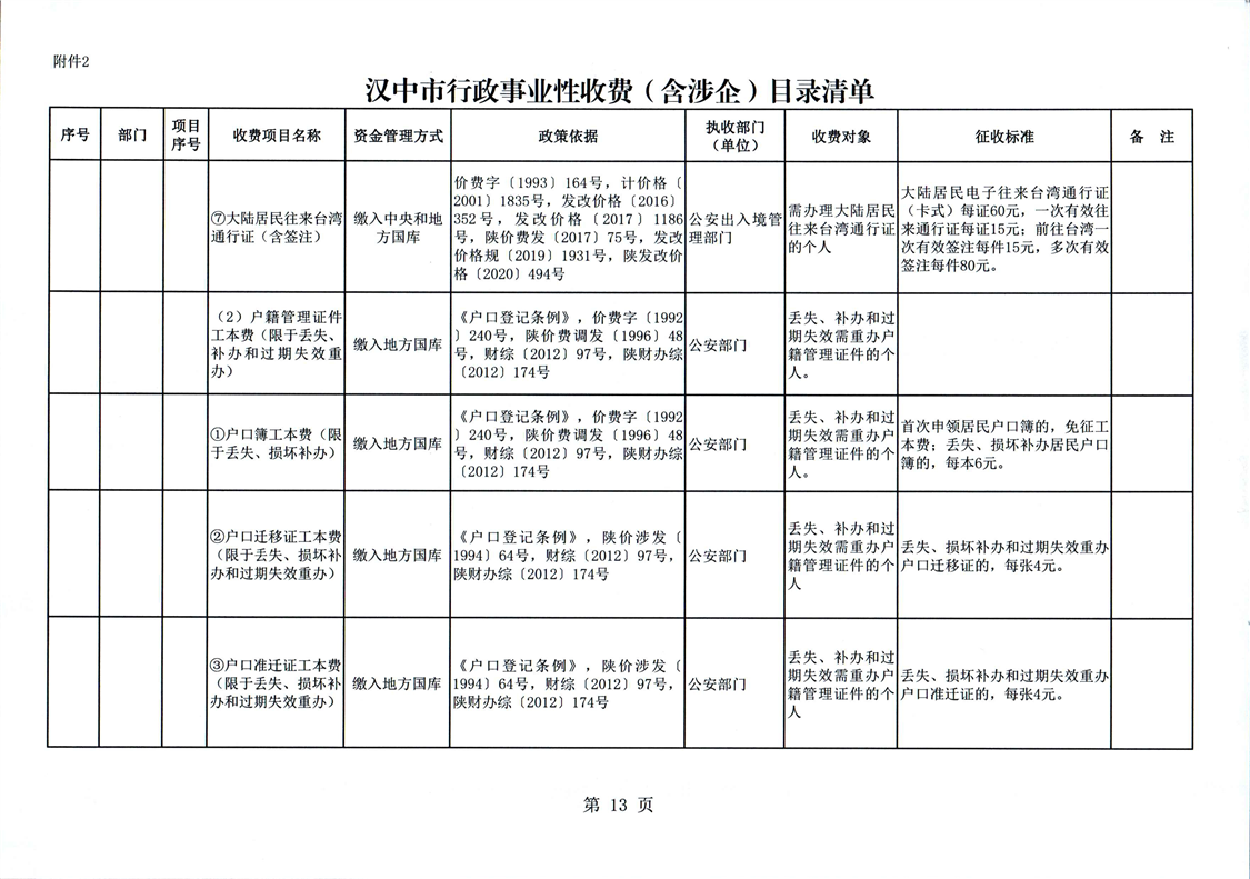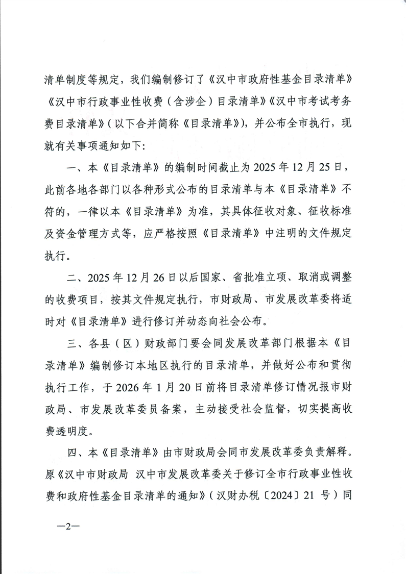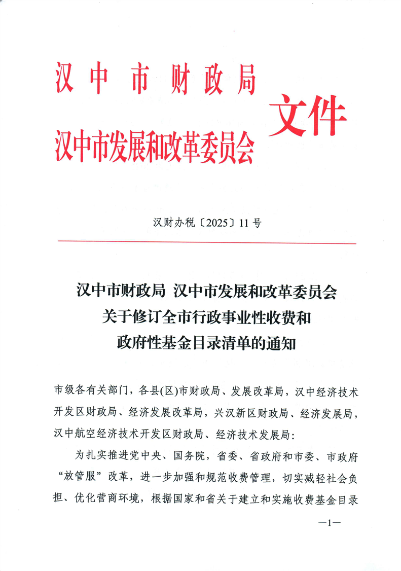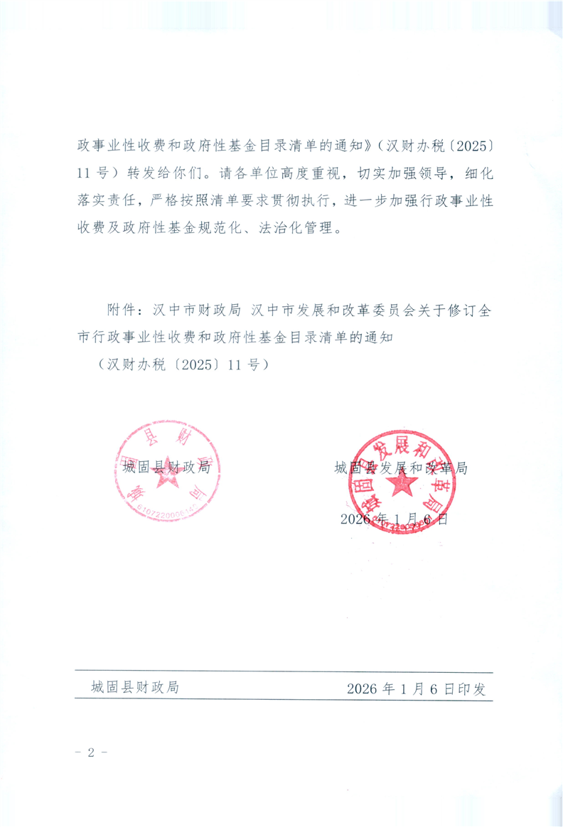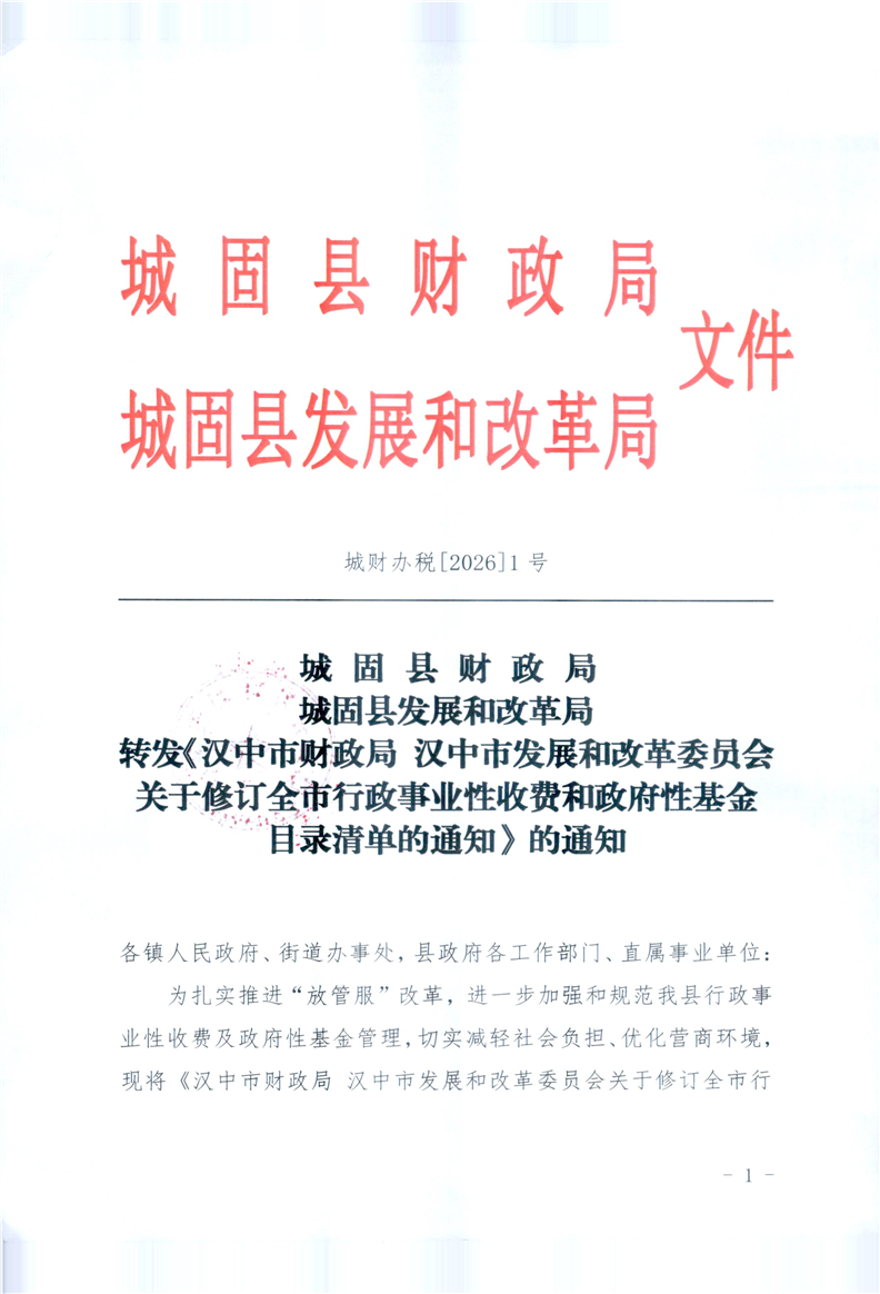 转发《汉中市财政局 汉中市发展和改革委员会关于修订全市行政事业性收费和政府性基金目录清单的通知》的通知