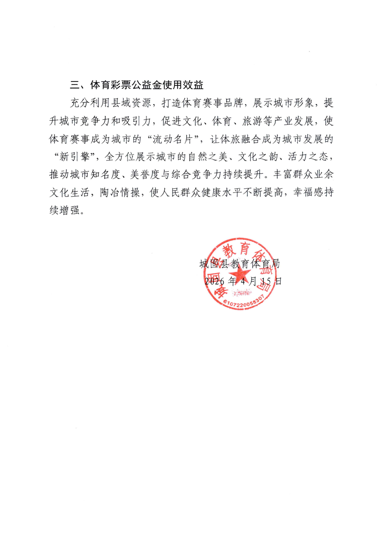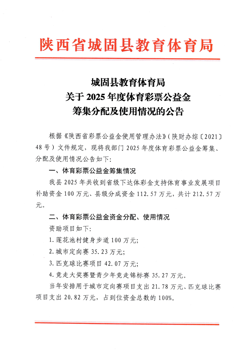 城固县教育体育局关于2025年度体育彩票公益金筹集分配及使用情况的报告