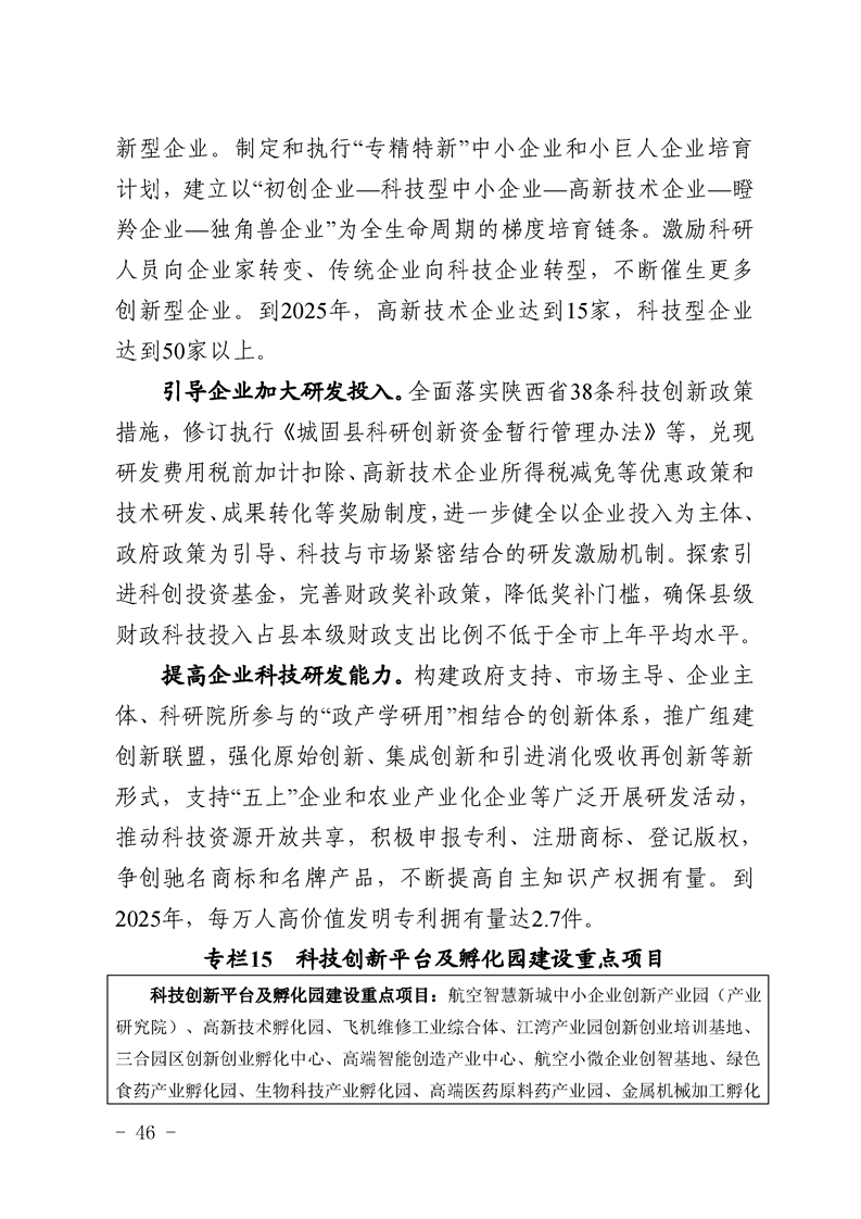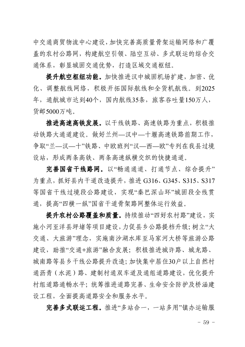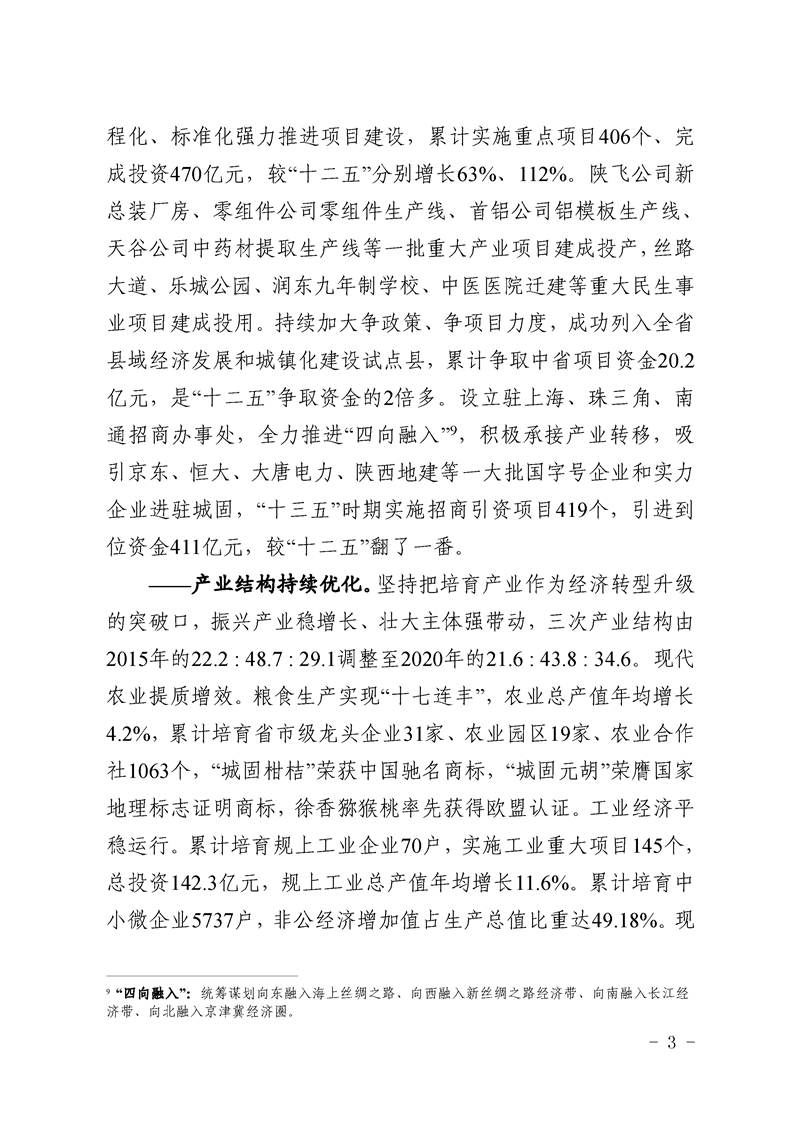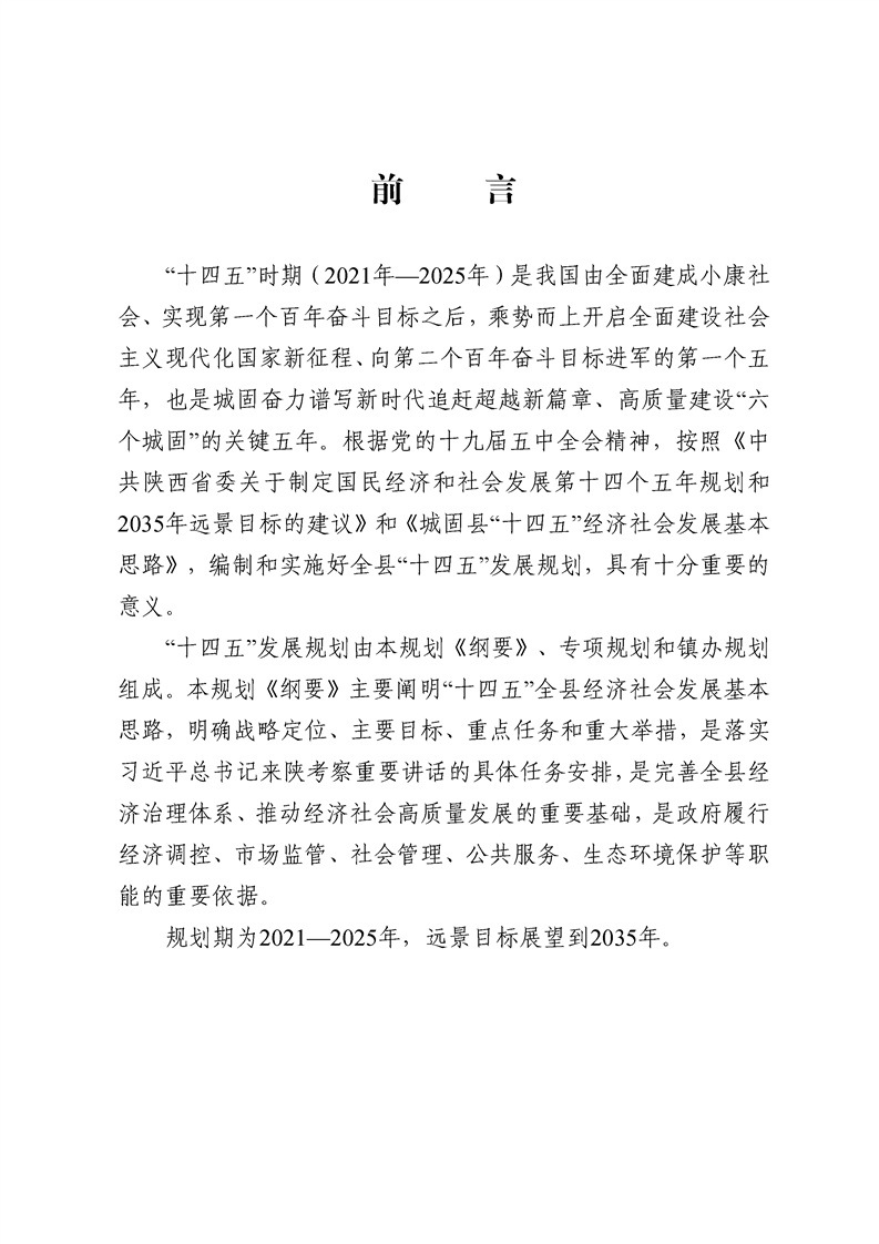 城固县“十四五”规划纲要