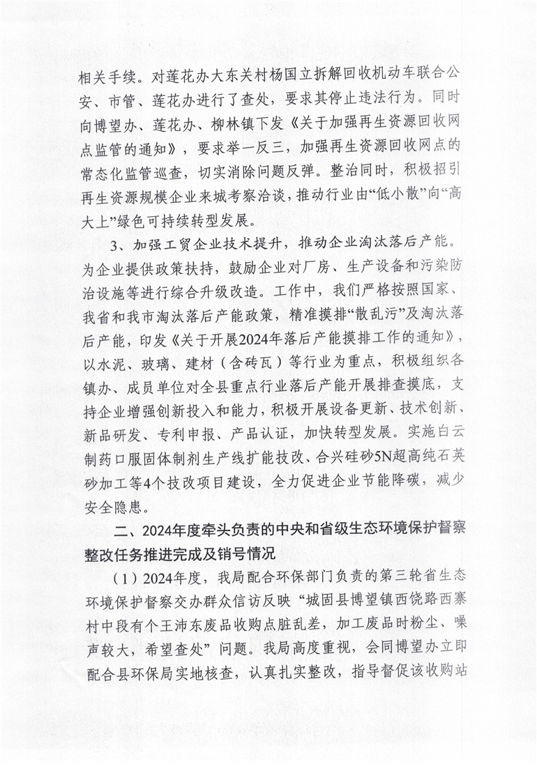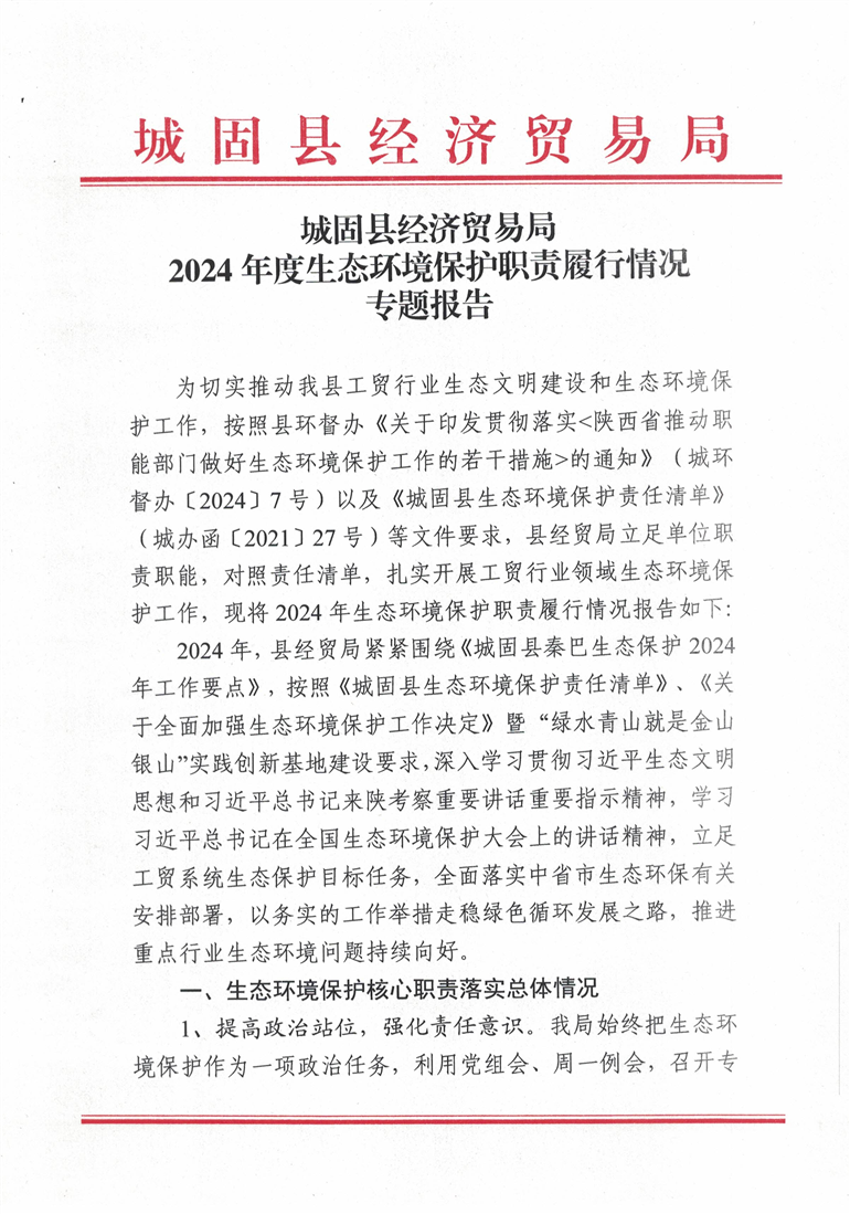城固县经济贸易局2024年度生态环境保护职责履行情况专题报告