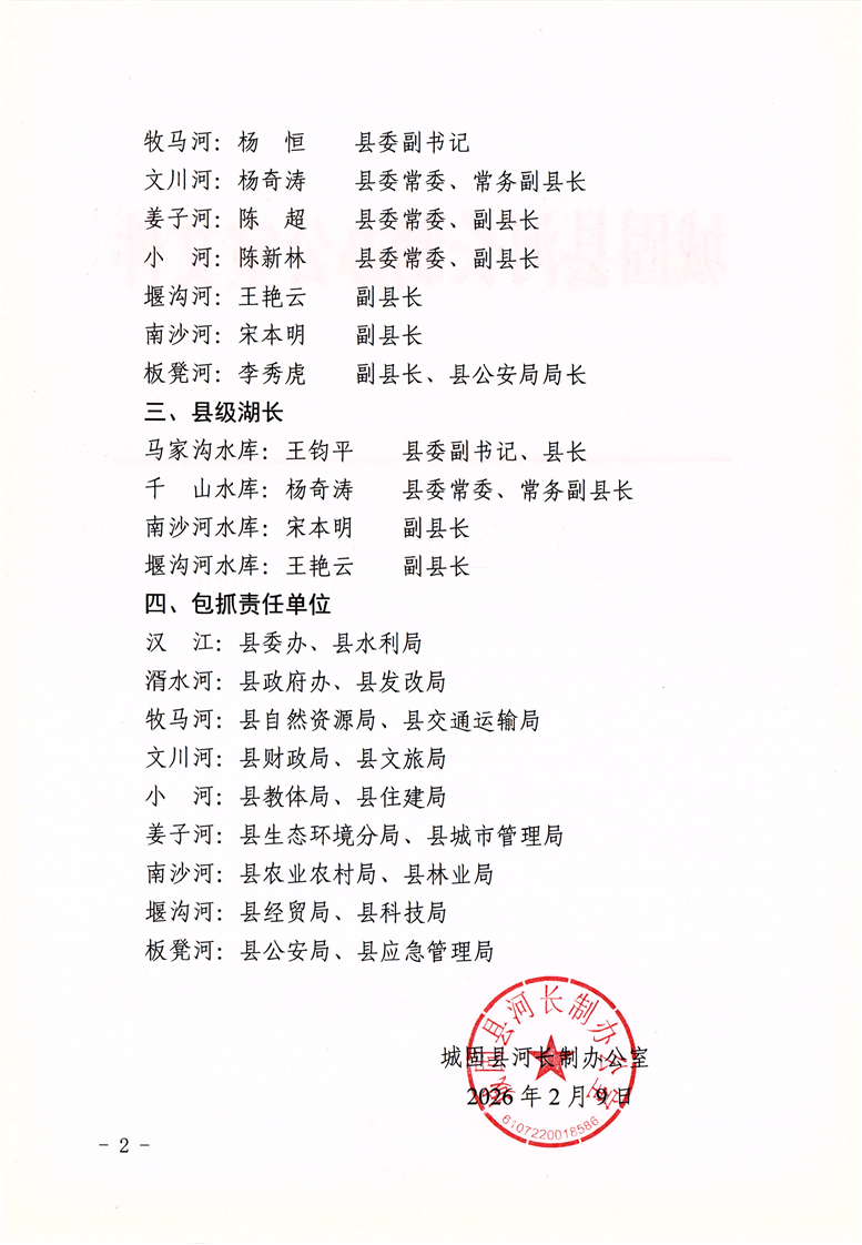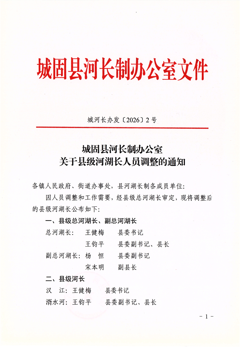 城固县河长制办公室关于县级河湖长人员调整的通知