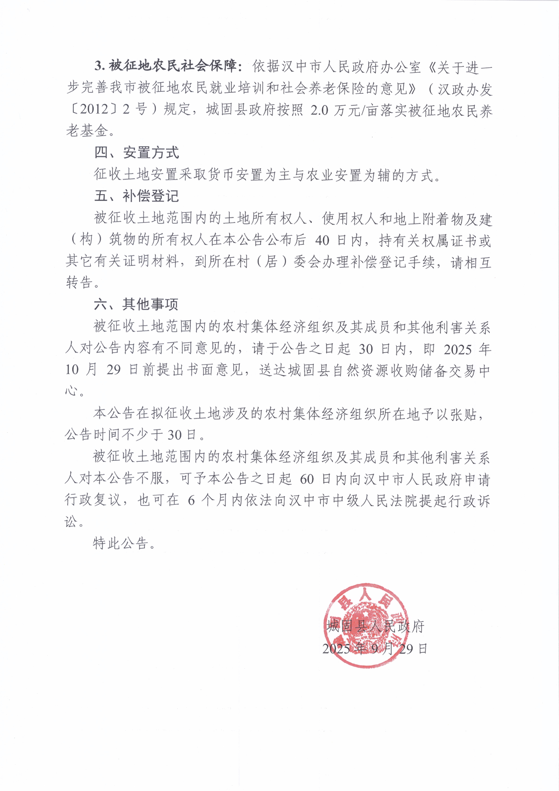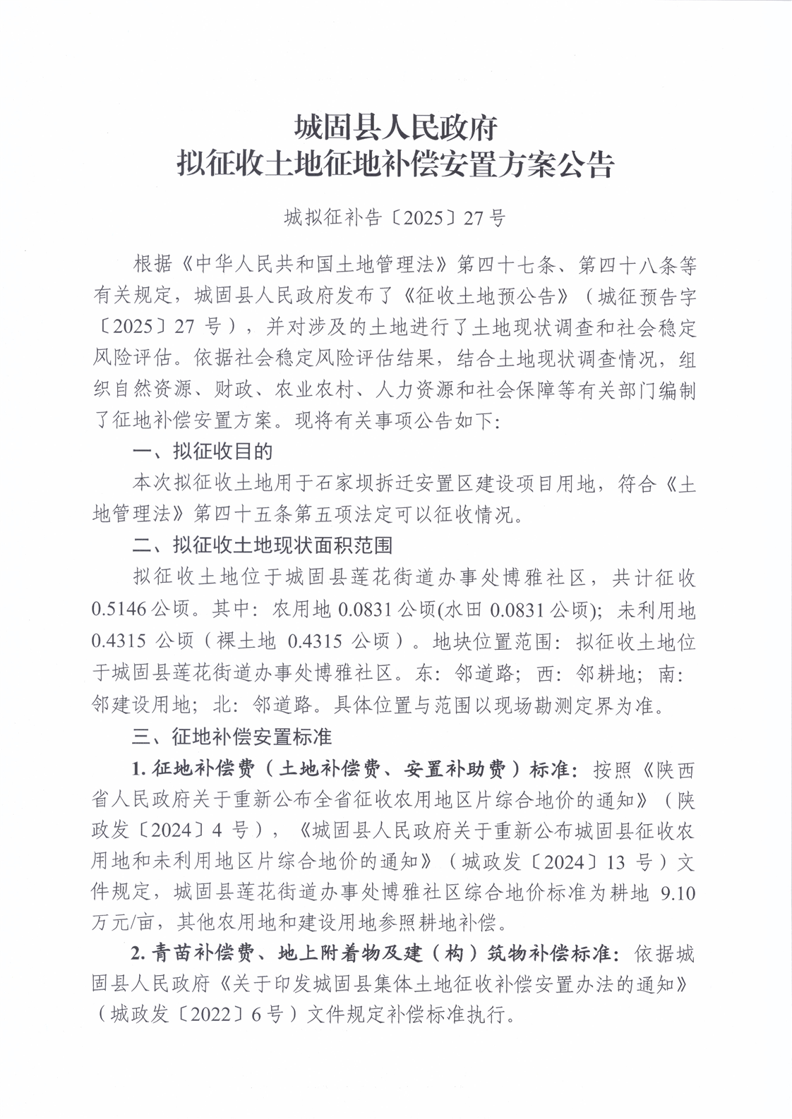 城固县人民政府拟征收土地征地补偿安置方案公告(27号)