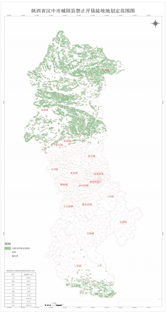 城固县禁止开垦陡坡地范围划定成果表