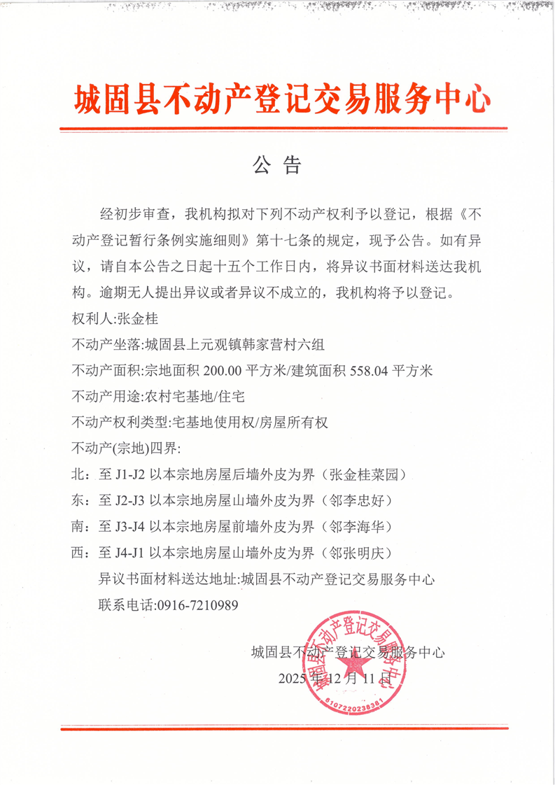 关于张金桂使用宅基地的公告