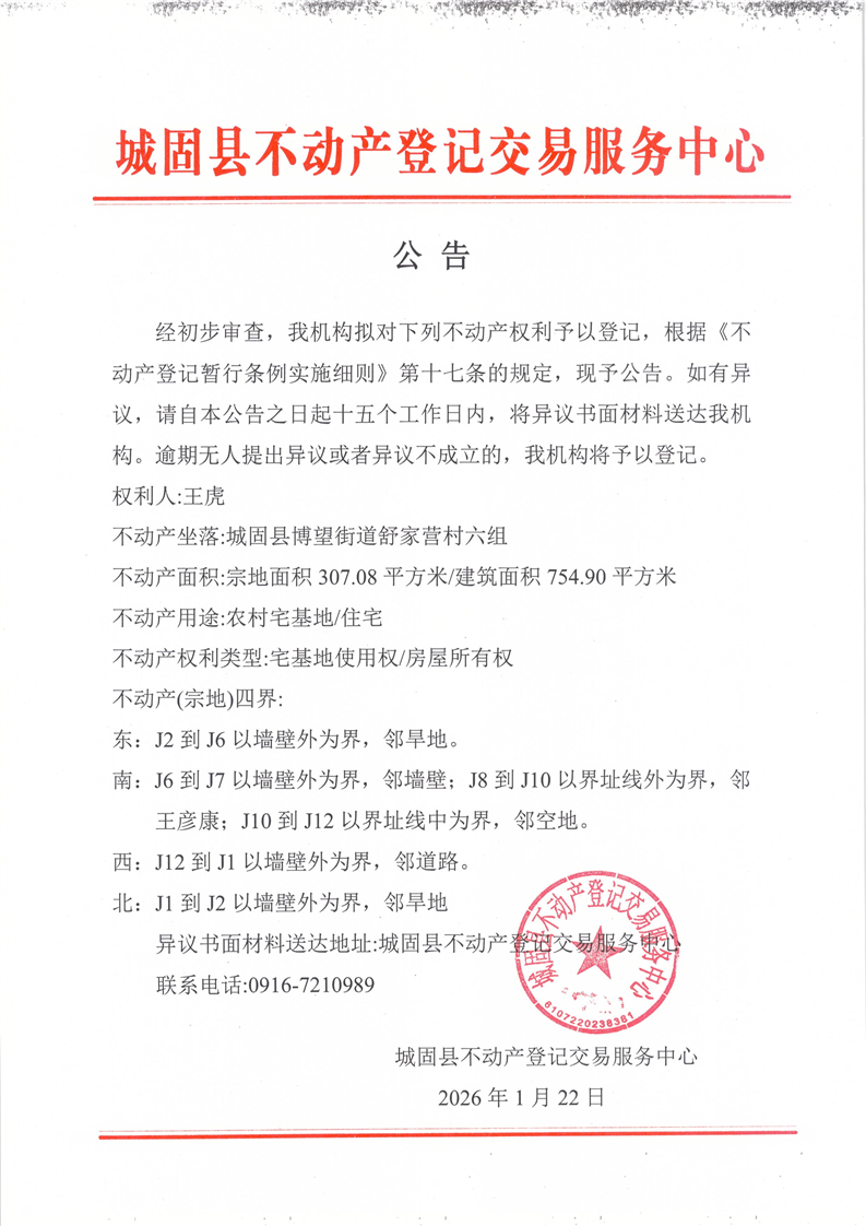 关于王虎使用土地的公告