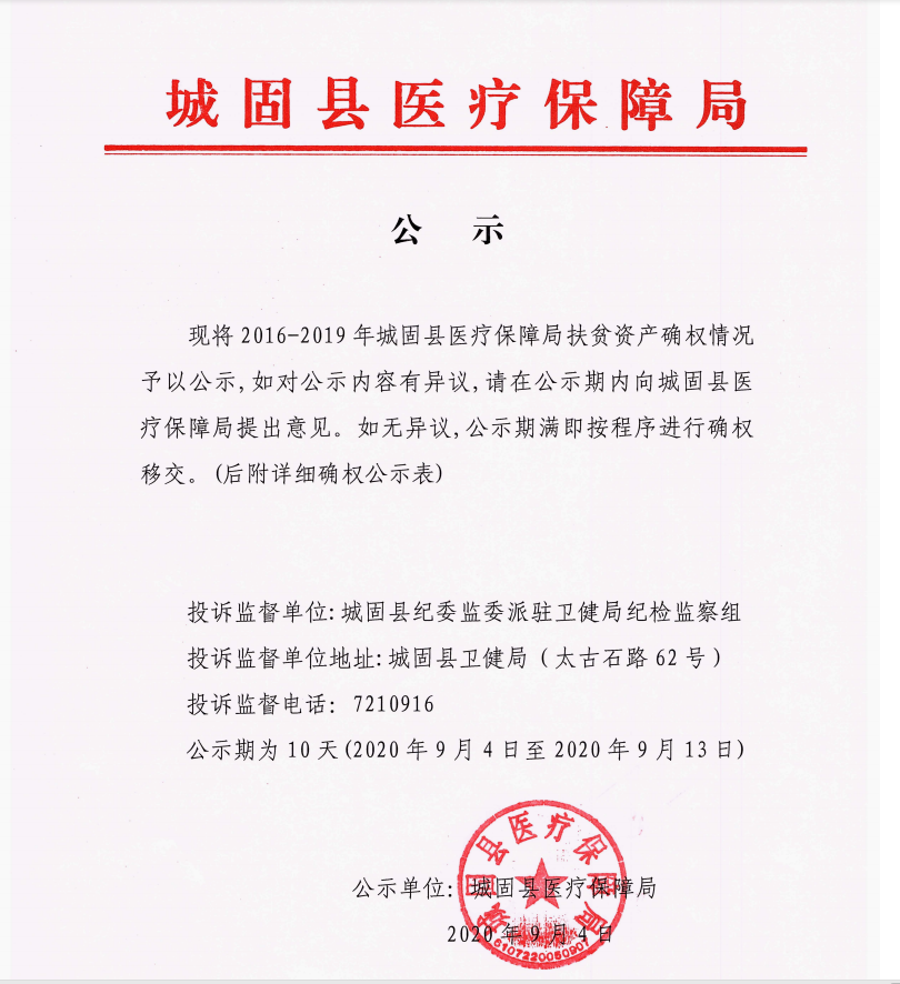 | 内容概述 | 2016-2019年城固县医疗保障局扶贫资产确权情况公示 | ||||