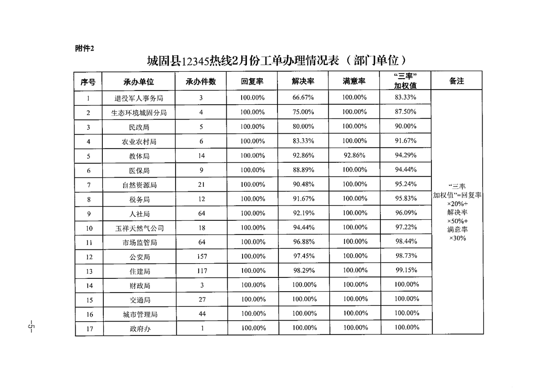 城固县12345热线2026年2月份工单办理情况表