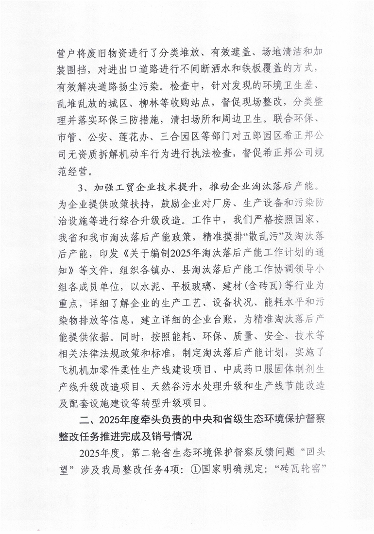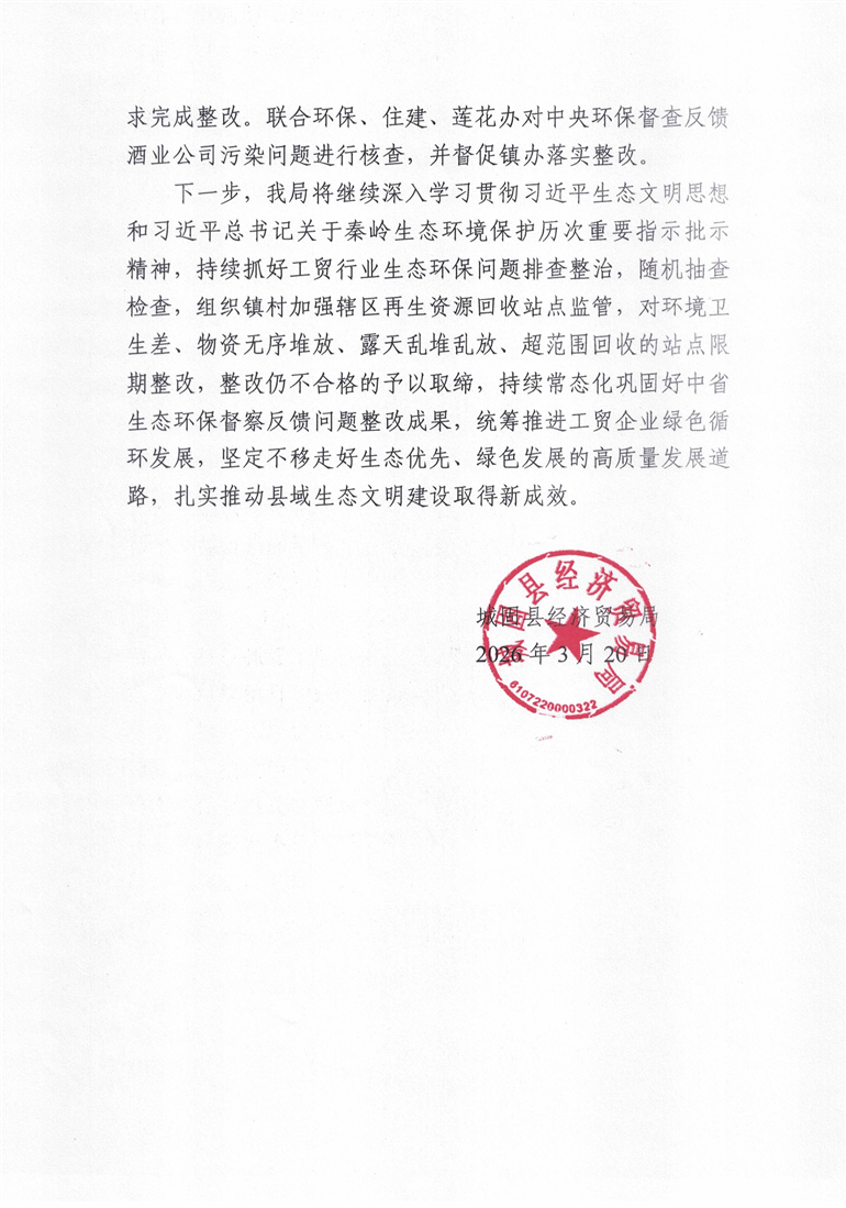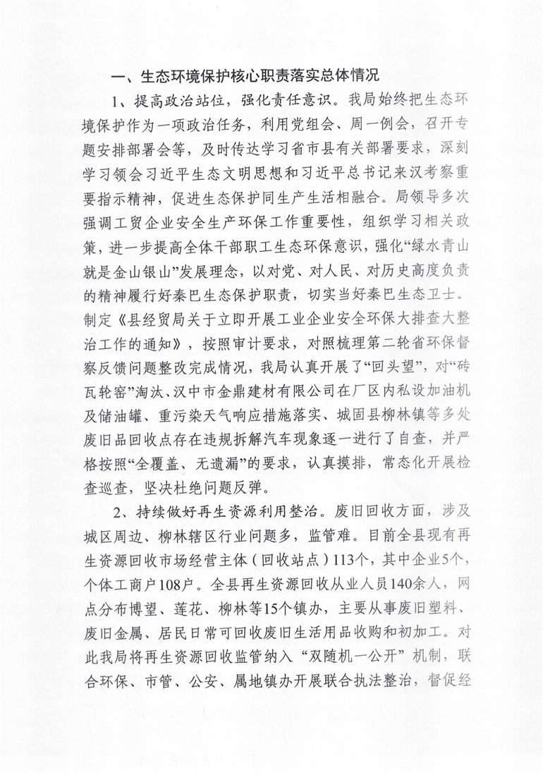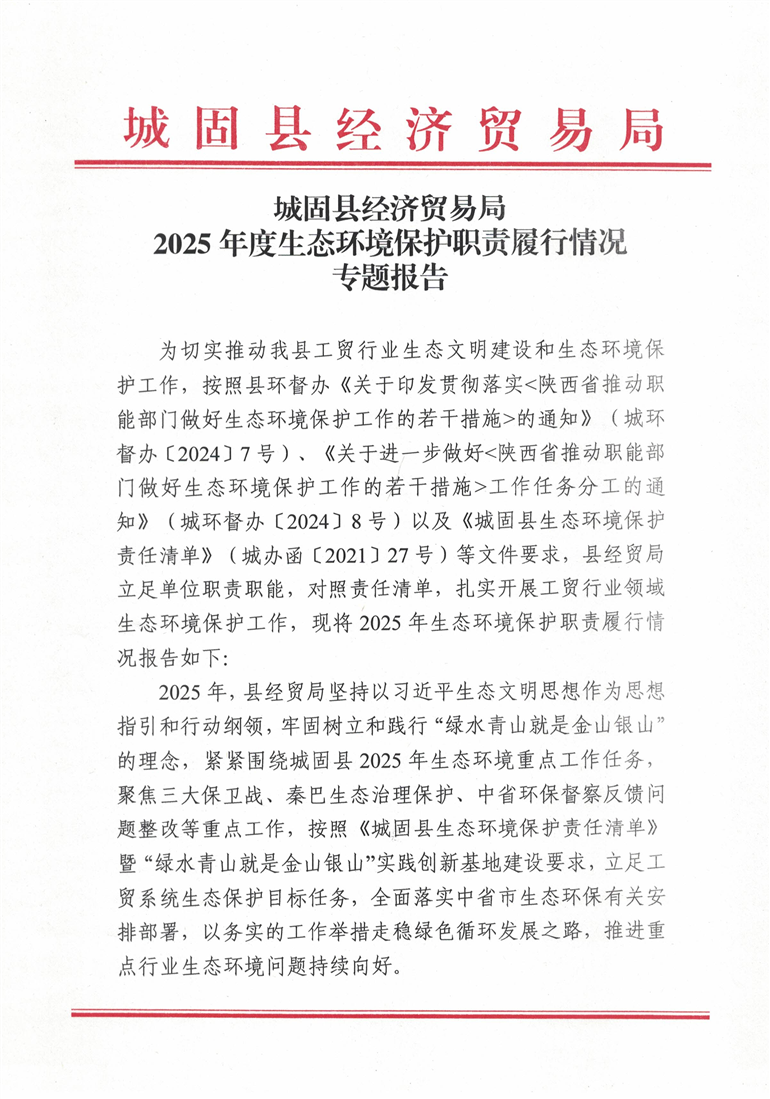 城固县经济贸易局2025年度生态环保职责履行情况专题报告