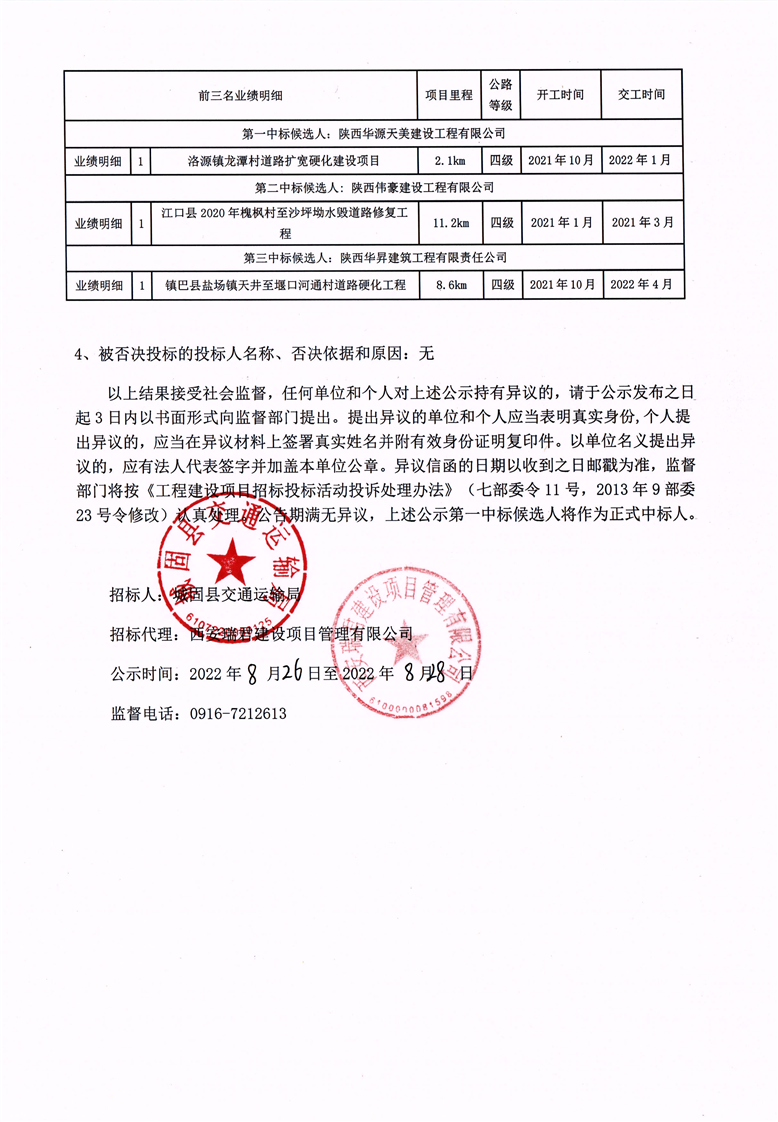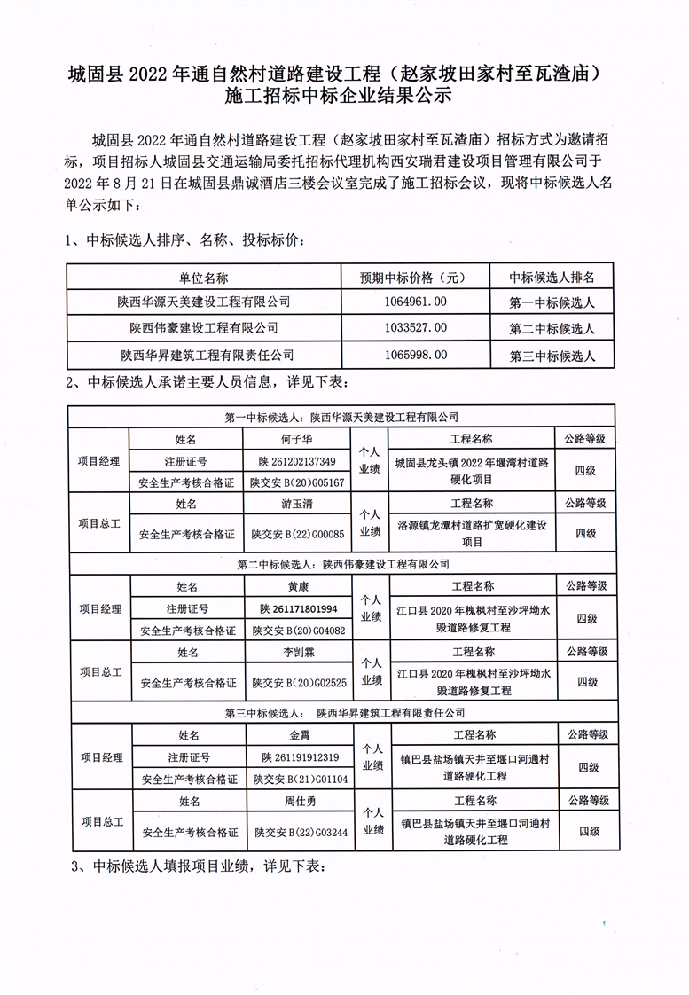 城固县2022年通自然村道路建设工程(赵家坡田家村至瓦渣庙)施工招标中标企业结果公示