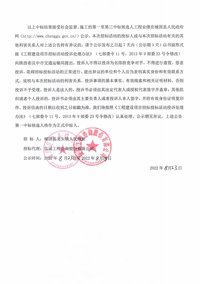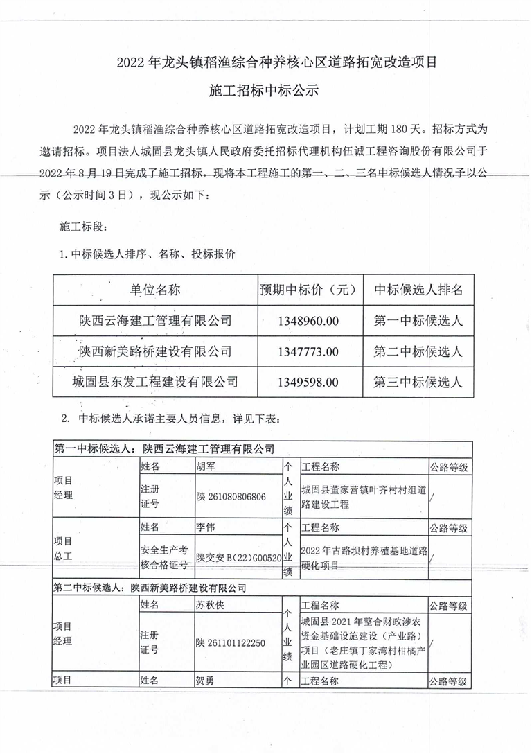 2022年龙头镇稻渔综合种养核心区道路拓宽改造项目施工招标中标公示