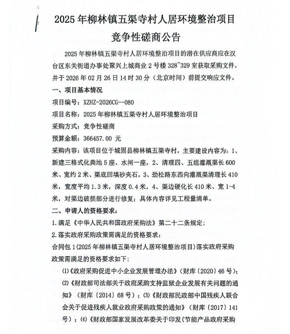 2025年柳林镇五渠寺村人居环境整治项目竞争性磋商公告
